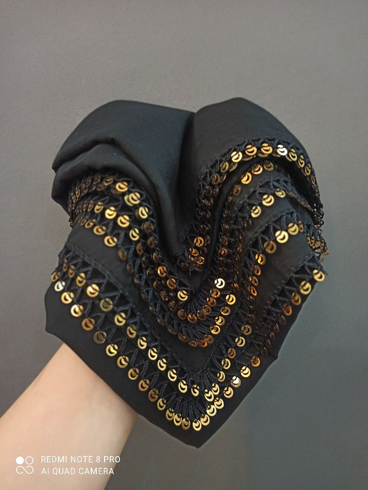 Tamamen el yapımı, pullarla süslenmiş şık yazma. Tığ işiyle titizlikle örülmüştür. Özel günler ya da günlük kullanım için idealdir.