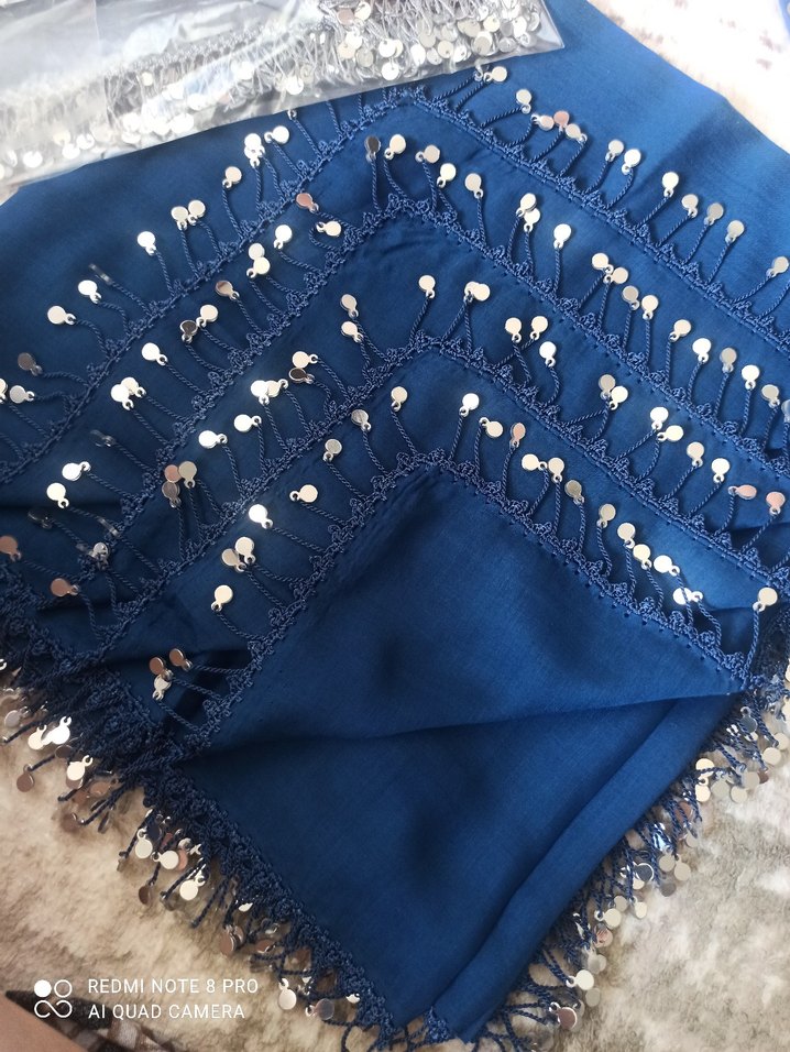 Tamamen el yapımı, tığ işi ve pullarla süslenmiş özel yazma. Hem zarif hem gösterişli duruşuyla her stile uyum sağlar. Tek tek özenle hazırlanmıştır. Sipariş için mesaj atınız.
