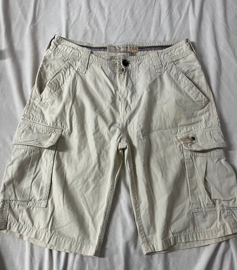 Pamuklu kumaştan bol kesim, kemerli beyaz midi şortlar. Çoklu cepleriyle rahat ve günlük dış mekan kullanımı için uygundur.