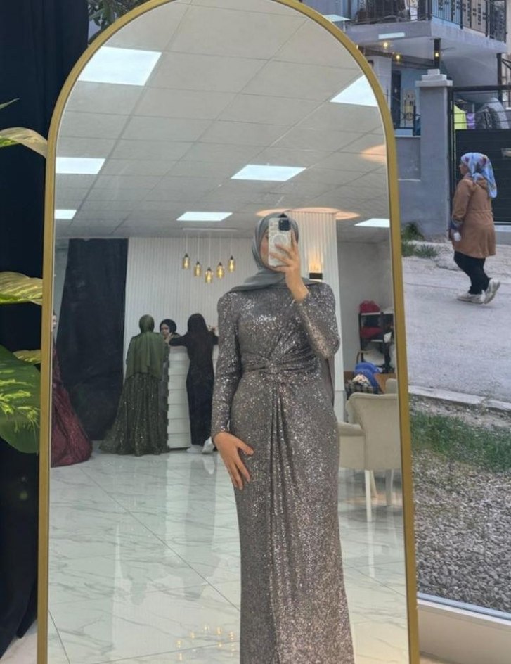 pulpayet Gri Uzun Abiye Elbise