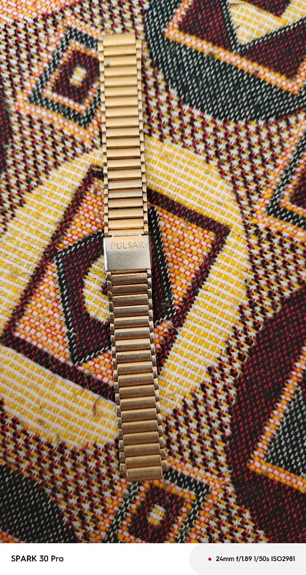 Pulsar marka erkek saat kordonu, altın renk metal bağlantılı tasarıma ve sağlam kilide sahiptir. Günlük kullanıma uygun klasik ve dayanıklı stildir. ⌚