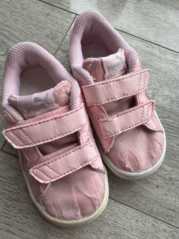 Pastel pembe renkte, cırt cırtlı bantlara ve kauçuk tabana sahip kız çocuk spor ayakkabısı. Rahat ve desen içermeyen tasarımıyla günlük kullanım için uygun. Resimde görüldüğü gibi üst file kısmında yırtıklar var ona göre fiyat verilmiştir