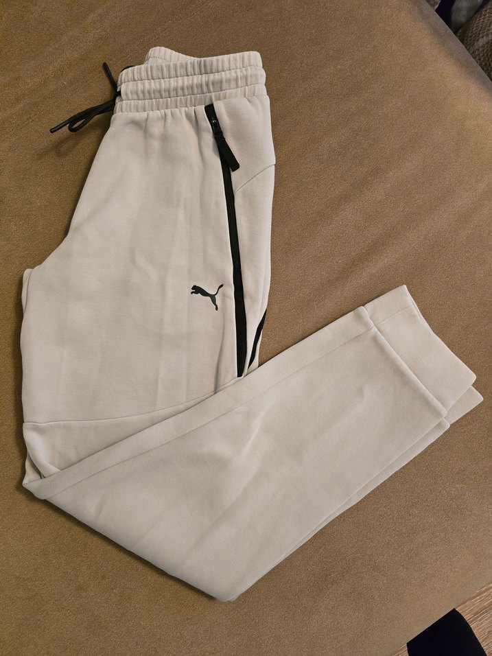 Puma markalı, fermuarlı cepleri ve normal kesimi olan bej erkek eşofman altı. Yumuşak ve sıcak kumaştan midi boyda, günlük kullanıma uygun. ♀️