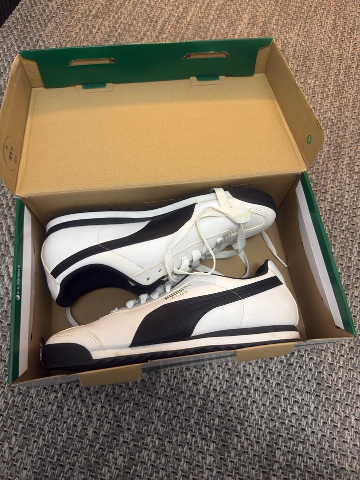 Beyaz ve siyah renklerde, bağcıklı, kauçuk tabanlı erkek spor ayakkabısı, sportif ve sokak stili için uygun. 43 numara