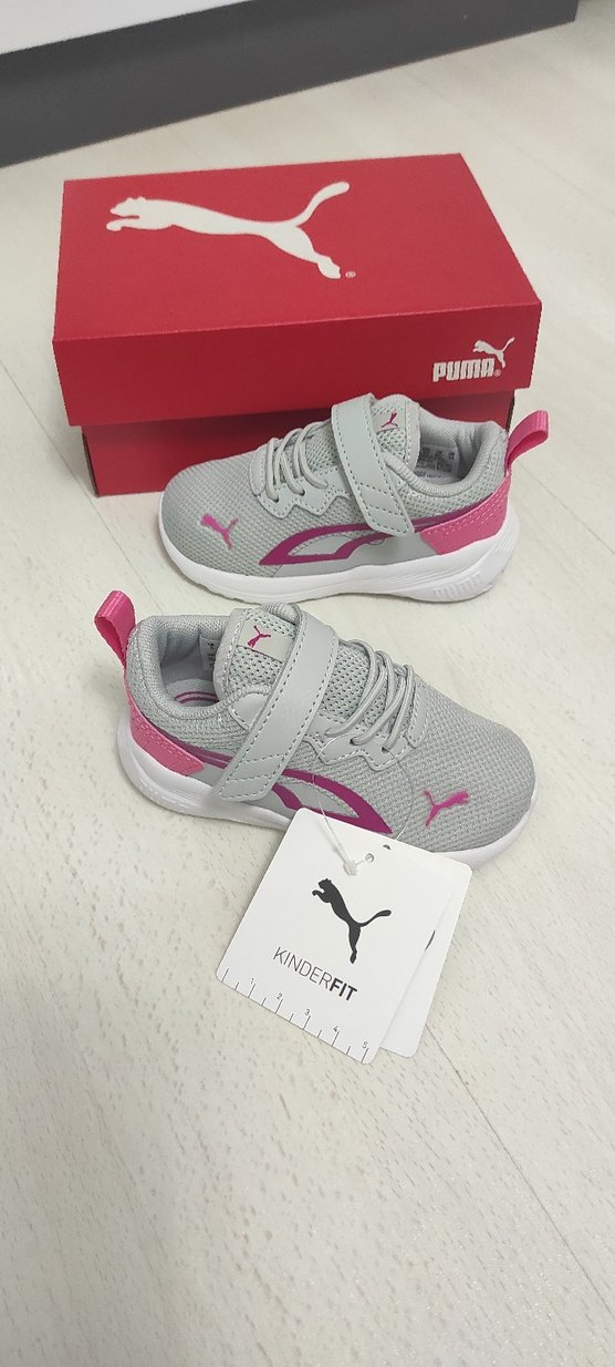 Kız çocukları için gri-pembe renklerde, baskılı desene sahip spor ayakkabı, puma ayakkabı 22 no orijinal sıfır ürün
