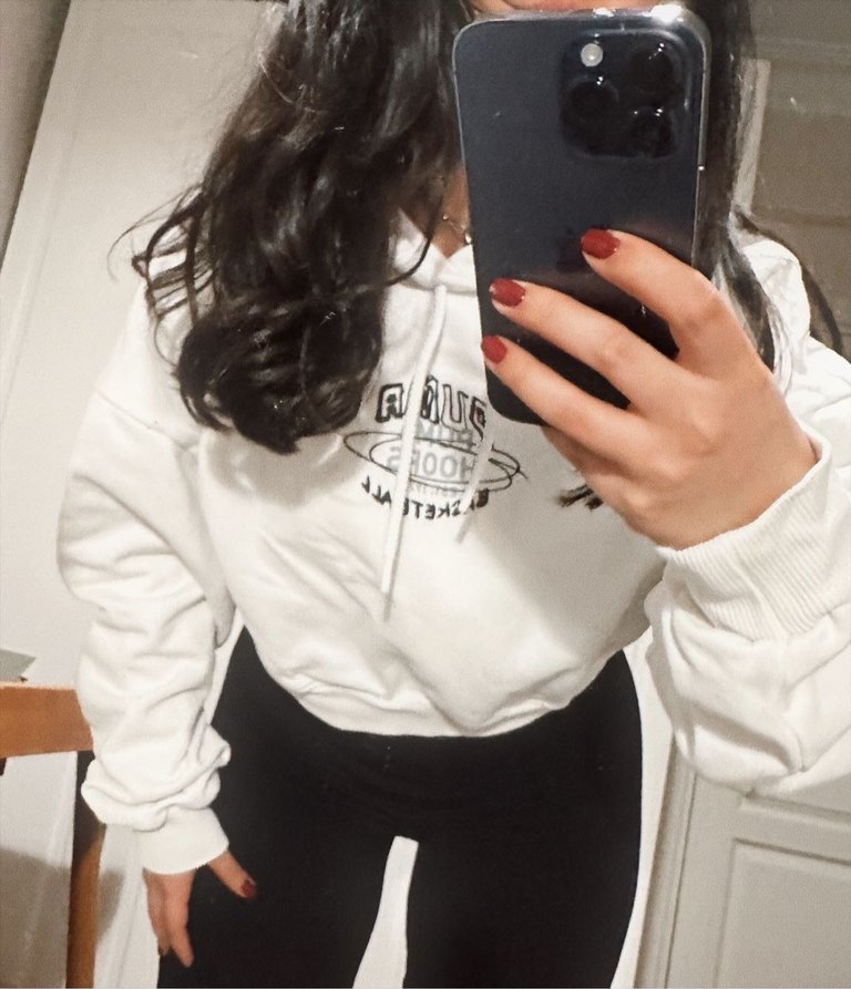 Beyaz tabanlı, koyu baskılı, uzun kollu ve bisiklet yakalı, yumuşak ve sıcak dokulu kadın sweatshirt. Günlük rahat sokak stiline uygundur. ✨
