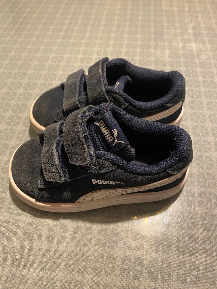 Lacivert renkli, kauçuk tabanlı ve cırt cırtlı Puma erkek çocuk spor ayakkabısı, şık sokak tarzı için uygundur.