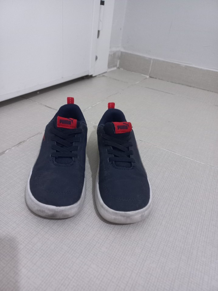 Puma marka, mavi ve gri renklerde, cırt cırtlı ve kauçuk tabanlı erkek çocuk sneaker'ı. Rahat sokak stili için uygundur. makineye atılmadı çok az kullanıldı gorselden çok daha iyi görüntüsü