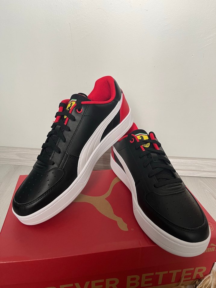 Puma erkek spor ayakkabılar, renkli baskılı desen, cırt cırtlı kapanış ve kauçuk tabanla sokak stili ve spor konforunu birleştirir. Kırmızı-siyah renkler öne çıkar.