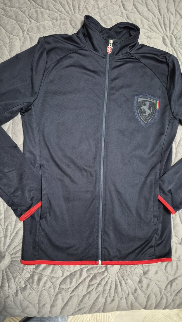 Bu erkek spor eşofman üstü, fermuarlı cepler ve tam arka fermuarla birlikte, uzun kollu ve bisiklet yaka tasarıma sahiptir. Koyu Lacivert renkte, baskılı armalı ve rahat athleisure tarzındadır. Deformasyon Yok.En 50 boy 66 kol 68 cm