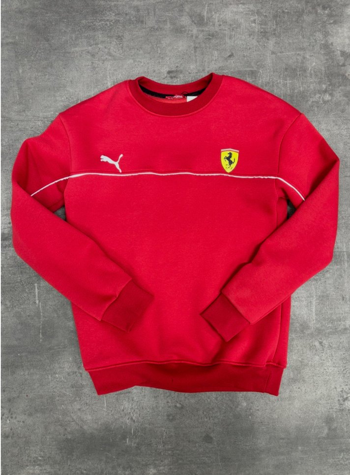 Puma Ferrari Kırmızı, uzun kollu, bisiklet yakalı ve vücuda oturan kesime sahip erkek spor sweatshirtü. Yumuşak ve sıcak dokuma kumaştan, baskılı detaylıdır. ♂️