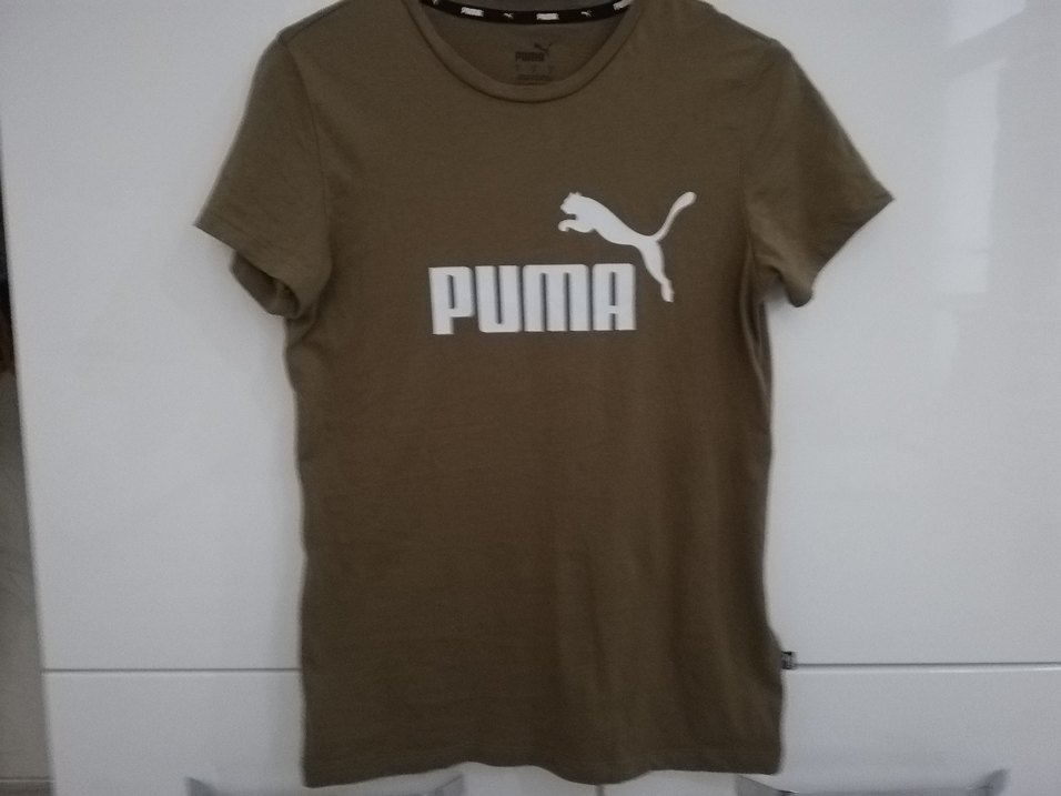 Haki, kısa kollu ve bisiklet yaka Puma tişört, önünde büyük baskılı logo bulunur. Rahat ve spor tarz için uygundur.