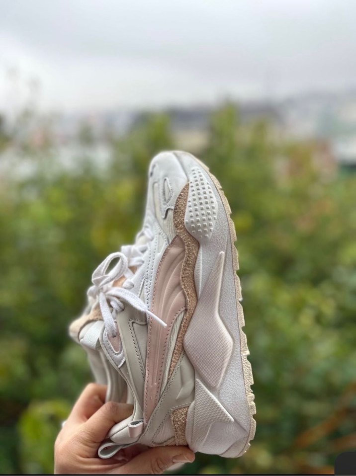 Dolgu topuklu ve bağcıklı beyaz spor ayakkabı, pastel tonlarda yılan deseniyle. Kauçuk tabanlı, sportif sokak stili için uygun. Mağaza ürünü gibi orijinal
