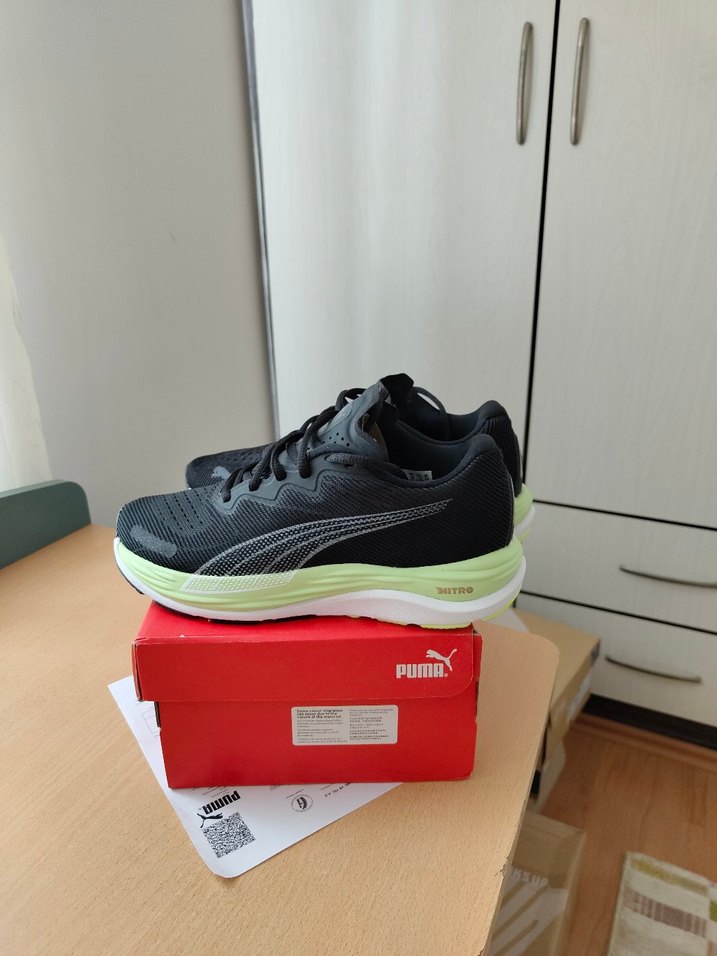 Puma Velocity Nitro 2 modeli. Pumanın 75.Yıl serisidir. Ürün Pumanın Resmi Türkiye Sitesinden satın alınmıştır. 38numaradır(24cm). Sadece 1kez denenmek için giyilmiştir.Profesyonel koşu ayakkabısı çok hafiftir. Kutusunda faturasıyla birlikte gönderilecektir. Etiket fiyatı 5900tl dir. FİYAT SONDUR!