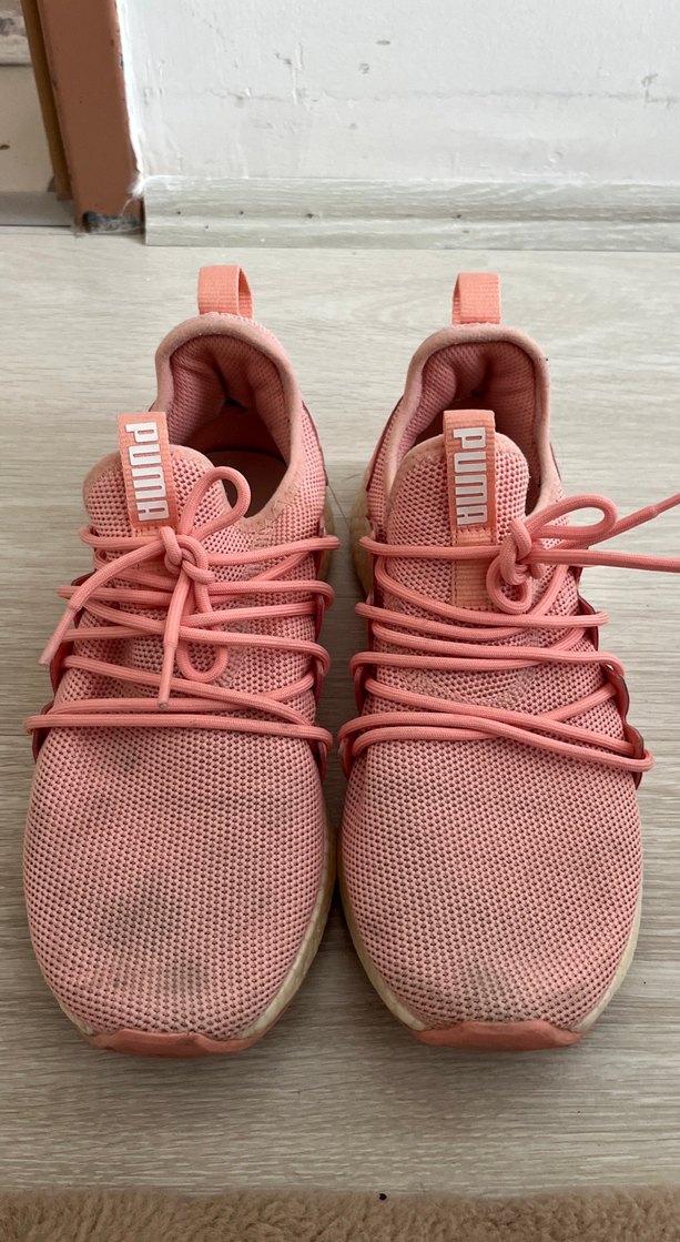 Pastel pembe Puma spor ayakkabılar, bağcıklı tasarımı ve stiletto topuklu yapısıyla sokak modası ve spor şıklığını bir araya getirir. hiçbir yırtığı yok hafif lekeler var yıkanıp gönderilecektir orjinal üründür