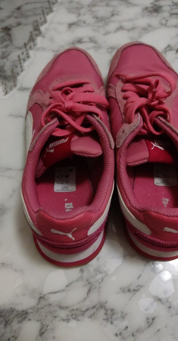 Puma pembe kadın spor ayakkabısı, stiletto topuk ve cırt cırt detaylıdır. Kauçuk malzemeden üretilmiş, sportif ve günlük sokak stiline uygundur.