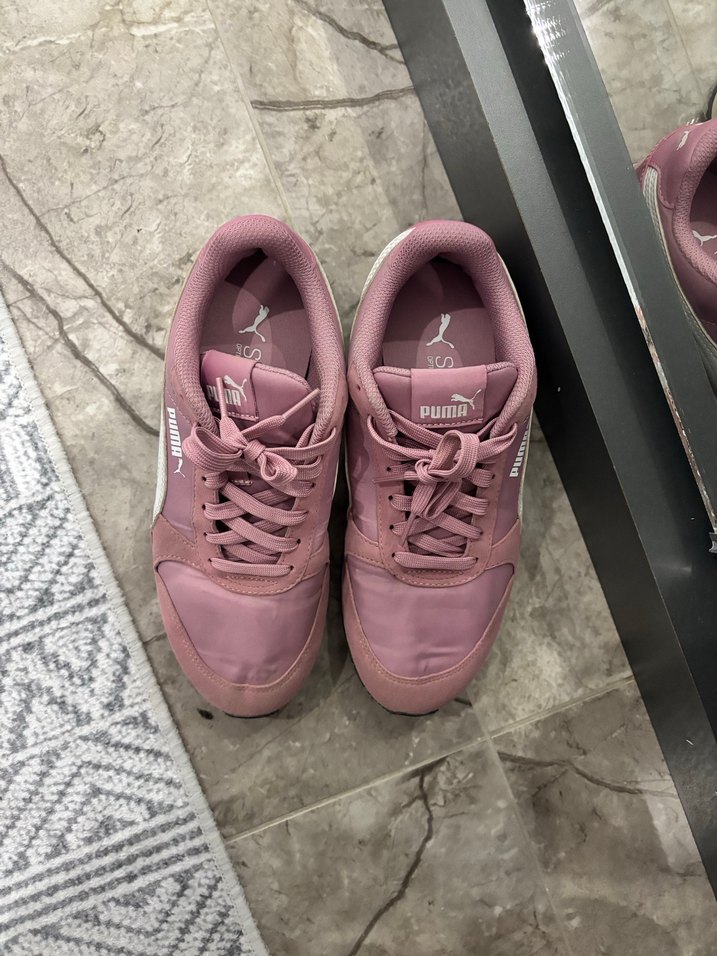 Pembe Puma kadın spor ayakkabısı,spor sokak stili için tasarlanmıştır. Neredeyse hiç kullanmadım . Boyner den almıştım . Renkten dolayı çok giymiyorum.