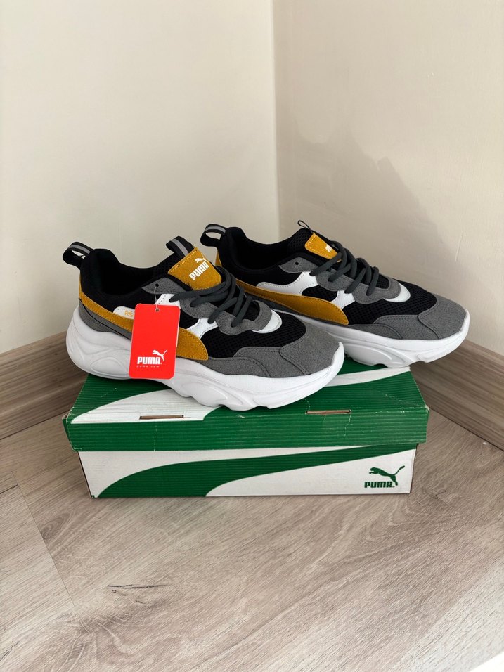 Sarı- gri detaylı Puma RS-X spor ayakkabı.Rahat ve sokak stili için uygundur.