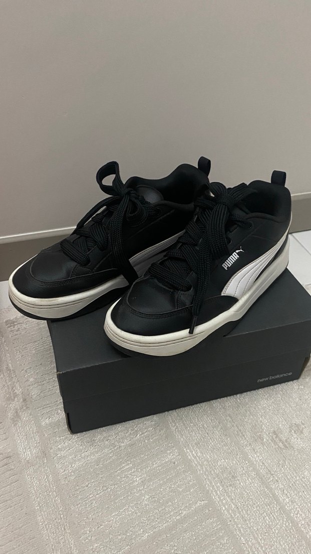 Siyah beyaz Puma erkek spor ayakkabısı, düz kauçuk tabanlı, bağcıklı , spor ve günlük kullanım için uygun. Çok az giyildi 42 numara