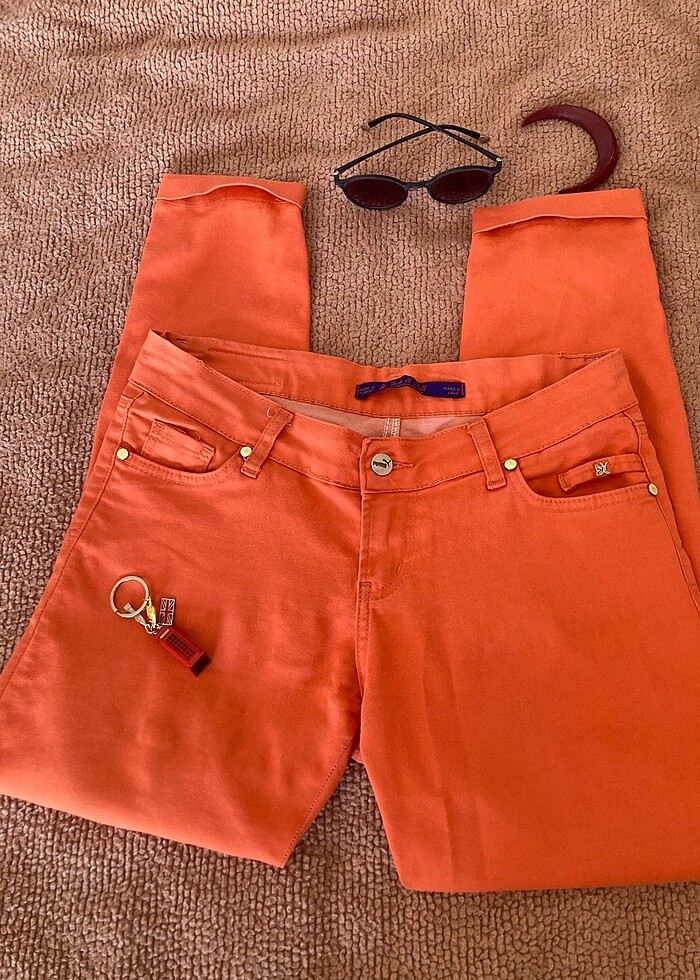 Puma marka Lack & Pull denim pantolon somon renk likralı cigarette pantolon az kullanıldı çok canlı bir renk bahar gibi yumuşacık çok kaliteli bir kumaşı var