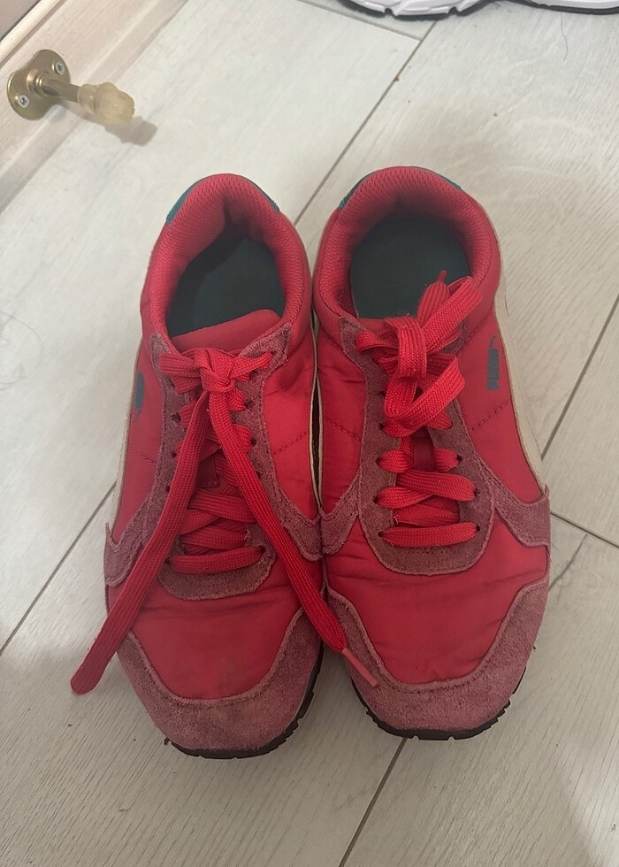 Puma pembe spor ayakkabı. 38.5 numara. Ayağıma büyük geldiği için satıyorum. Yırtığı vs. yoktur. Temizdir. Orjinaldir