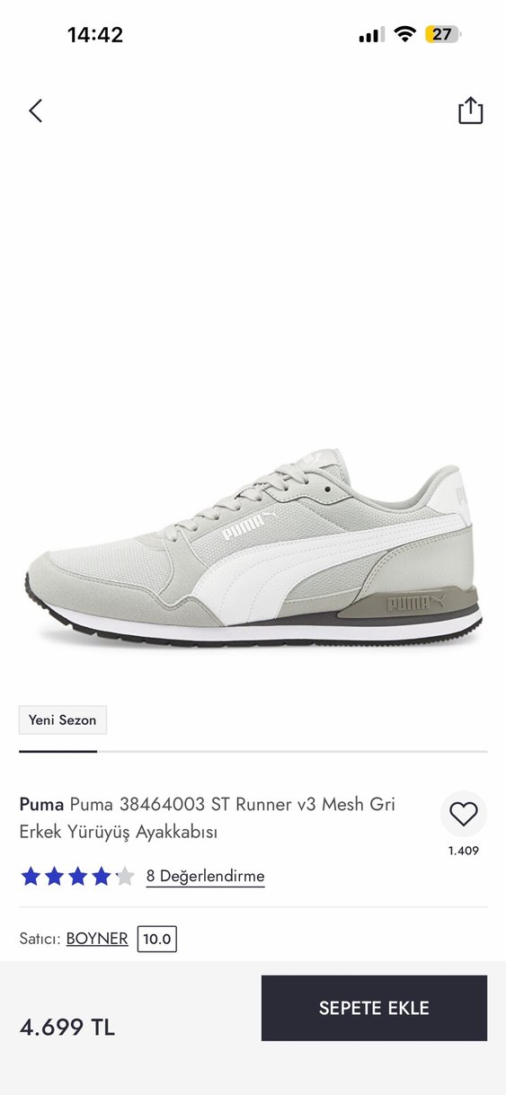 Puma ST Runner v3 Mesh gri renkli, dolgu topuklu ve kauçuk tabanlı, modern klasik stilde, sportif ve şık erkek spor ayakkabısı. Hiç kullanılmamış sıfır kendin kutusuyla gönderme yapılacaktır