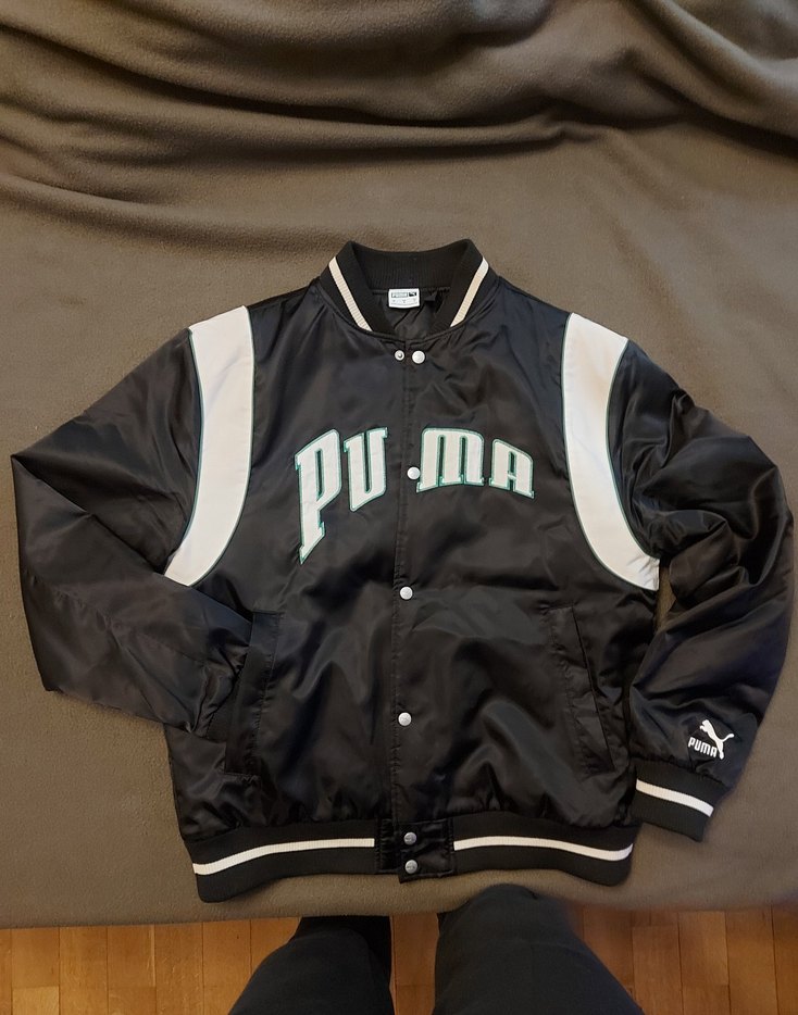 Orijinal, retro tarz, Puma Varsity Mont Ceket. Özel ürün. Havalı mal . 2023 yılına ait sanıyorum. O yıllarda büyük İstinye Puma dan almıştım. Bir kere dahi giymedim. Pumanın ikonik suede modelinden ve renklerinden esinlenmiş. İçi dolgulu tüm kış giyilir. Dış kumaş full dikiş, kaliteli ve parlak. Boyum 1.80 kilom 78, kalıp hakkında fikir edinebilirsiniz fotoğraflardan. #puma #pumasuede #varsityceket #bomberceket #erkekmont