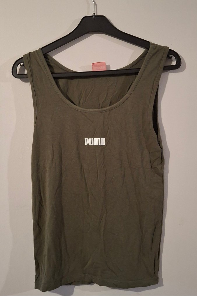 Puma markalı, kolsuz, yuvarlak yakalı ve bol kesim kadın atlet. Keten kumaştan, önünde baskılı logo bulunur. Spor ve günlük kullanıma uygundur.
