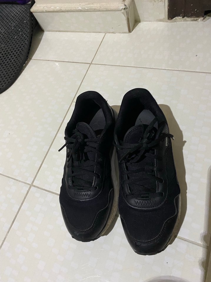 Siyah spor ayakkabılar, günlük kullanıma uygun.