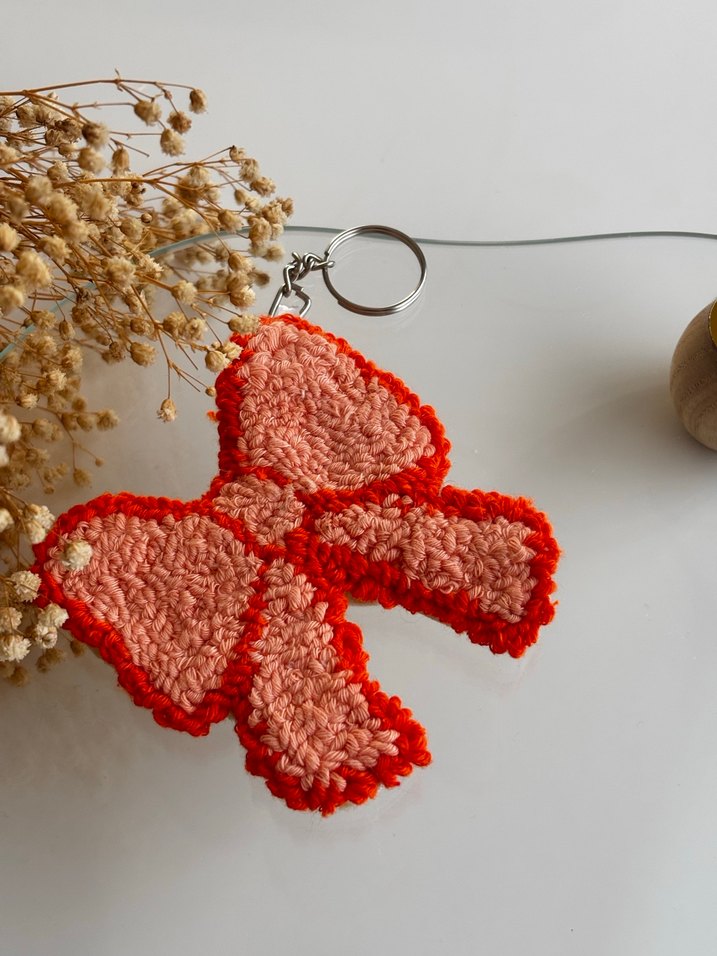 Püsküllü detaylı, renkli pembe anahtarlık. Rahat bohem tarzda, retro dokunuşlar sunar.