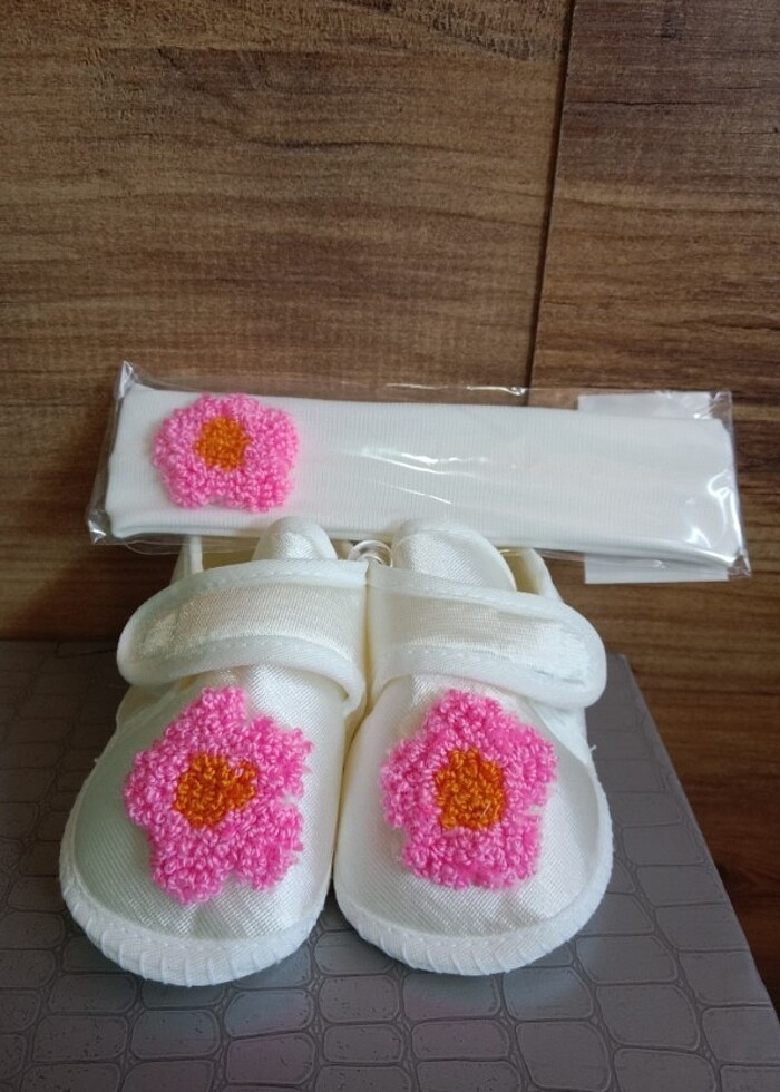 Punch işlemeli kız bebek patiği ve bebek bandanası bandajı sıfır üründür el emeği