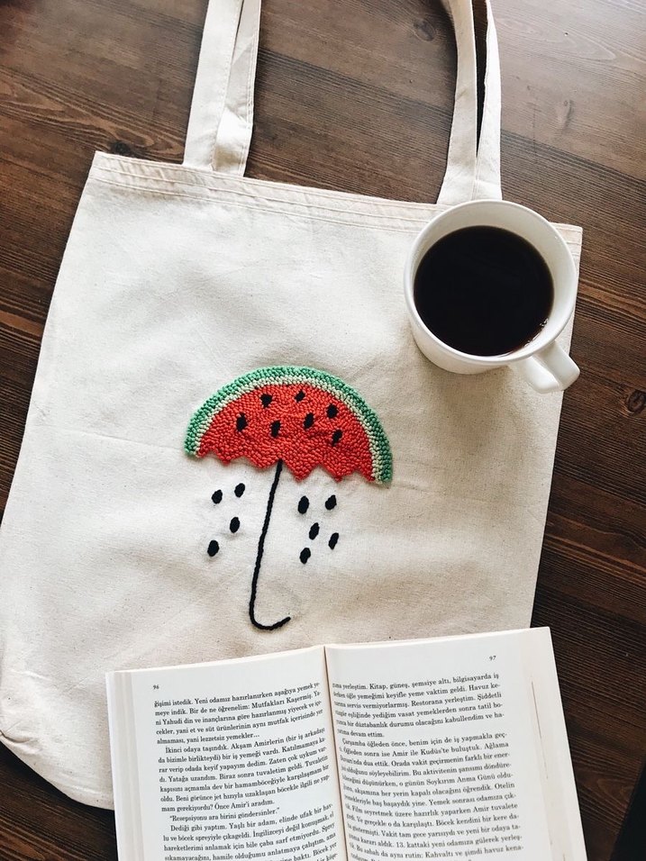 Punch işi işlemeli bez çanta