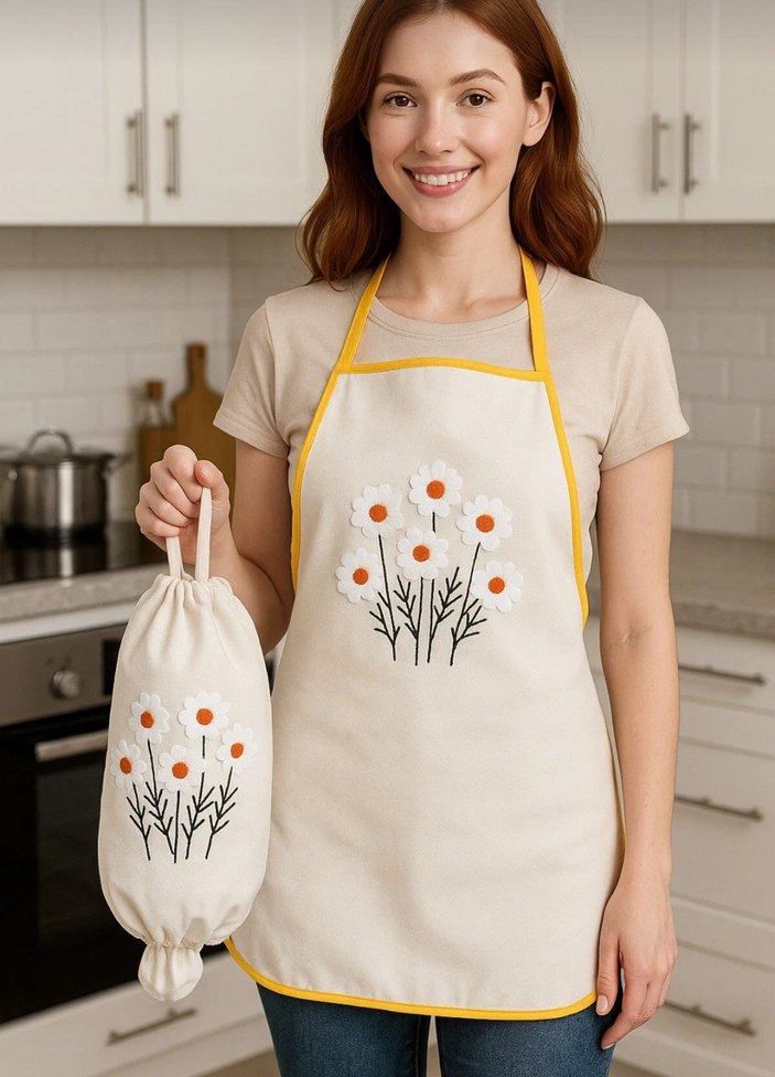 Punch İşlemeli Mutfak Önlüğü Poşet lik Takım
