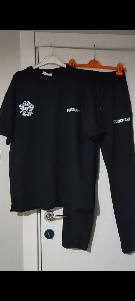 Rengi göründüğü gibi koyu siyahtır üst L beden 57 cm en 75 cm boy. Alt M beden eşofman boyu 99 cm Eşofmanın bir paçasında iç kısmında kalan bir dikiş hatası var oluşatından, fotoğrafa ekledim. Başka hiçbir sıkıntıları yok