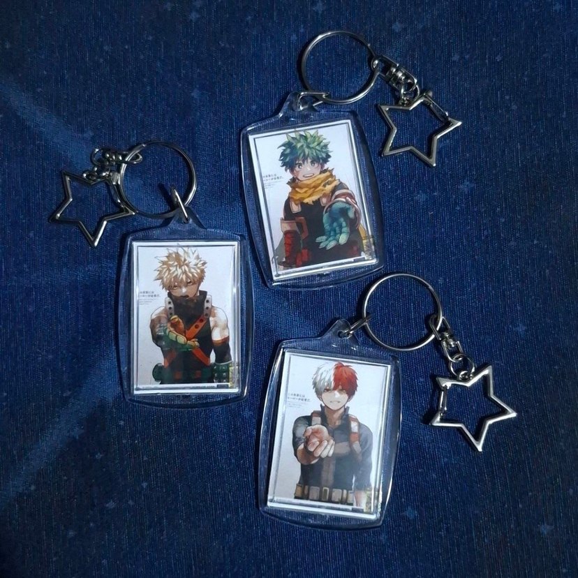 YENI ILAN ACTIRIN‼️My Hero Academia'dan Katsuki Bakugo, Izuku Midoriya ve Shoto Todoroki Official poster temalı anahtarlıklar. Adet fiyatı: 140tl Yıldız Clipssiz: 115tl. Isteğe özel fotoğraflar da basılabilir, fiyatta değişim olmayacaktır. Tags: Mha, anime, manga, hero, süper kahraman, kahraman, student, öğrenci, key, anahtarlık, anahtar, charm, yıldız, star, deku, çilek, pembe, turuncu, yeşil, karo, desen, mektup, aesthetic, estetik, kırmızı, red, kız arkadaş, erkek arkadaş, gift, hediye, yılbaşı, sevgililer günü, couple