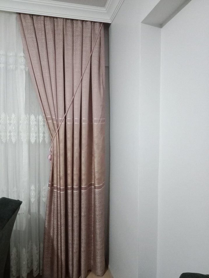 pastel tonlu, modern klasik tarzda ve nakışlı desenli bir perdedir. Odaya yumuşak ve şık bir dokunuş katar.