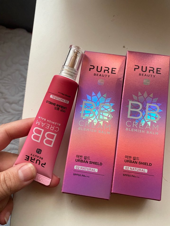 Pure Beauty BB Cream 02 Natural, pastel pembe ambalajda SPF50 PA++ koruma sağlar. Doğal görünüm için leke önleyici kapatma sunar. Bir tanesi kapalı hiç açılmadı 1 tanesi denendi ten rengi uymadı o yüzden satıyorum