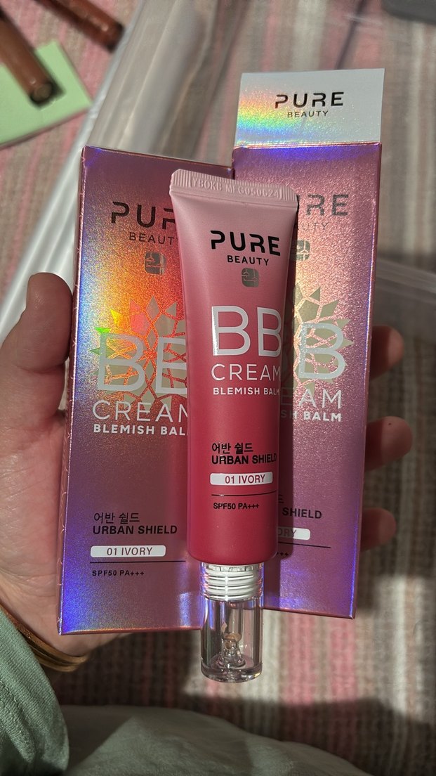 Pure Beauty BB Cream 01 Ivory, SPF50 PA+++ korumalı ve pastel pembe tonlu urban shield özelliği ile blemish balm sunar.