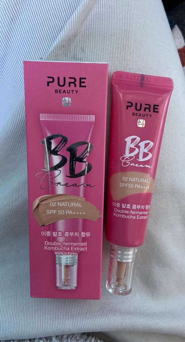 Pure Beauty BB Krem, SPF50 PA++++ koruma sağlar ve çift fermente kombu çayı özü içerir. Renk: 02 Natural. Hiç kullanılmadı, bir kere denemek için sürüldü rengi tenime olmadı. Watsons’dan aldım. Kapatıcılığı, inceliği harika.