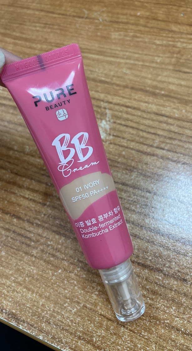 Pastel pembe ambalajda Pure Beauty BB Krem, SPF50 PA+++ koruma ve çift fermente kombucha özü içerir. 01 Ivory tonu hafif kapatıcılık sağlar. Yeni aldım tenime açık kaçtığı için satıyorum hiç kullanmadım denedım sadece cokguzel bi bb krem en az 1 yıl gıder