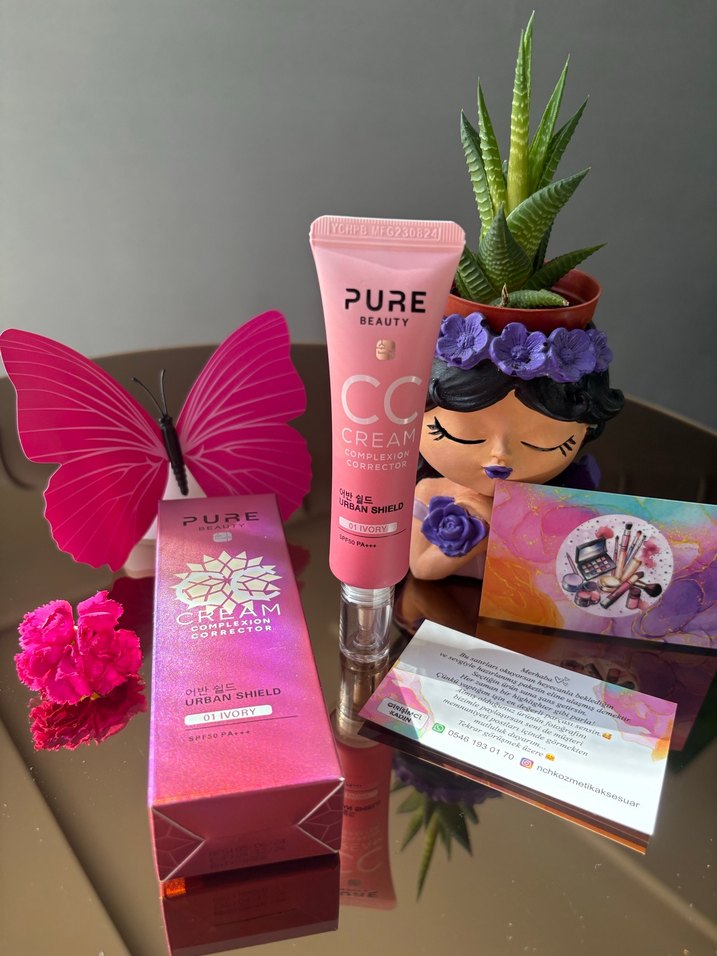Pure Beauty markasının CC kremi, renk düzeltici ve SPF 30 güneş koruması sağlar.