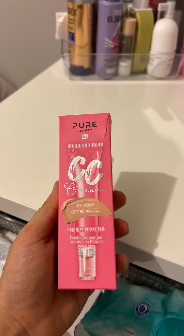 PURE Beauty CC Krem, pastel bej 01 Ivory renginde, SPF50 PA++++ koruma sağlar ve çift fermente kombucha özü içerir.