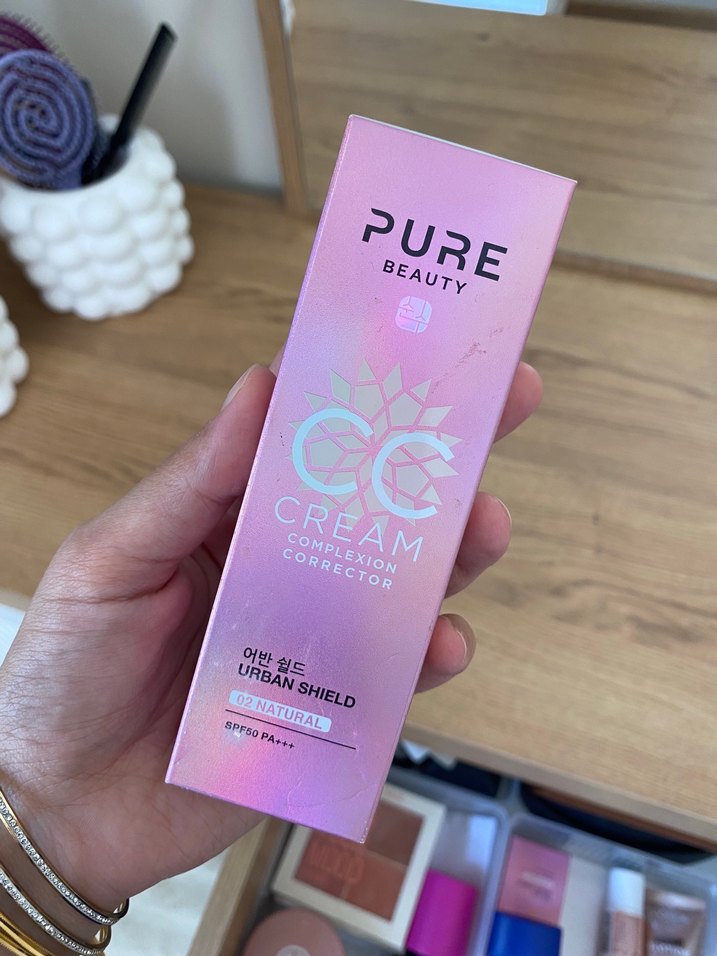 Pure Beauty CC Krem 02 Natural, pastel bej tonunda, SPF 50 PA+++ koruma sağlar ve cilt tonunu eşitler. Urban Shield özelliği ile koruma sunar.