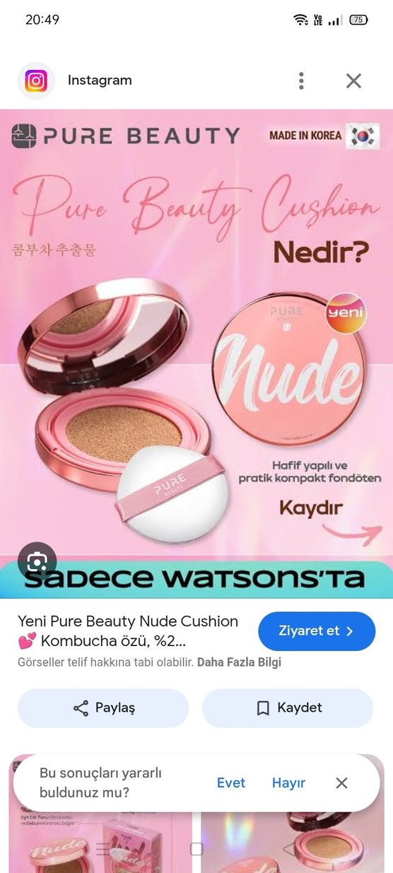 Pastel pembe Pure Beauty Nude Cushion, kombucha özü içeren hafif ve pratik kompakt fondötendir. Sadece Watsons'ta.