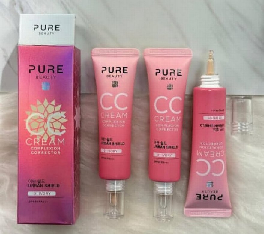 Pure Beauty pembe CC krem, cilt tonunu düzelten ve şehir koruması sağlayan pastel pembe tüpte sunulur.