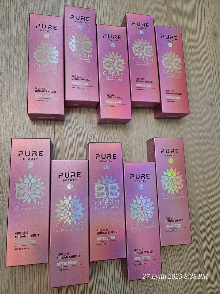 Pastel pembe ambalajda, SPF 45 korumalı Pure Beauty CC krem, hafif kapatıcılık sağlar.