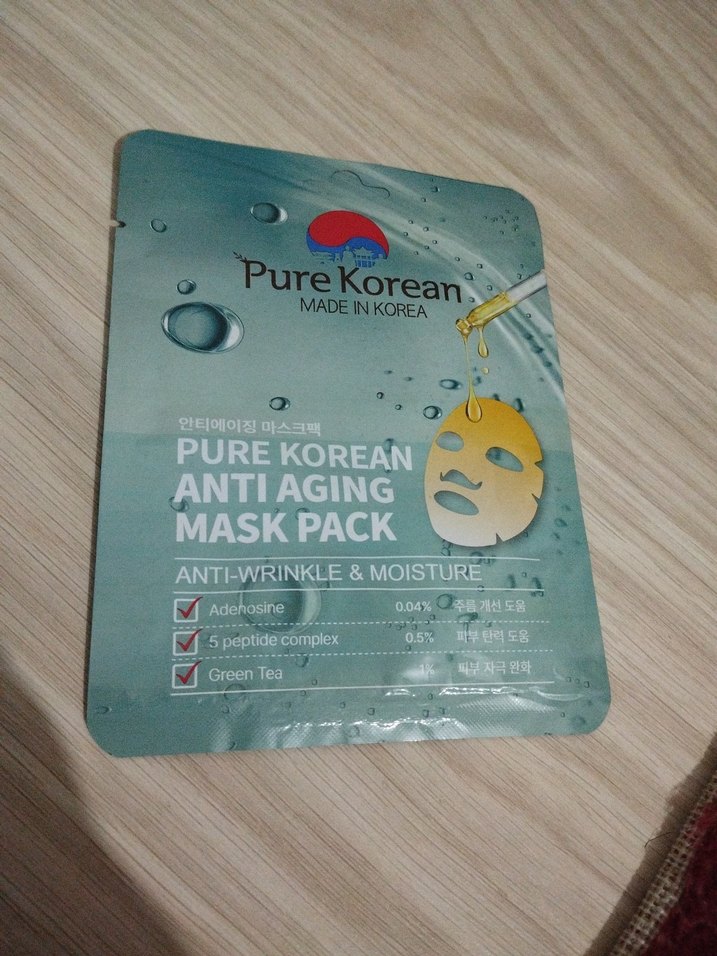 Pure Korean yaşlanma karşıtı maske, anti-kırışıklık ve nemlendirme sağlar. Peptit kompleksi ve yeşil çay içerir. Kore yapımı.