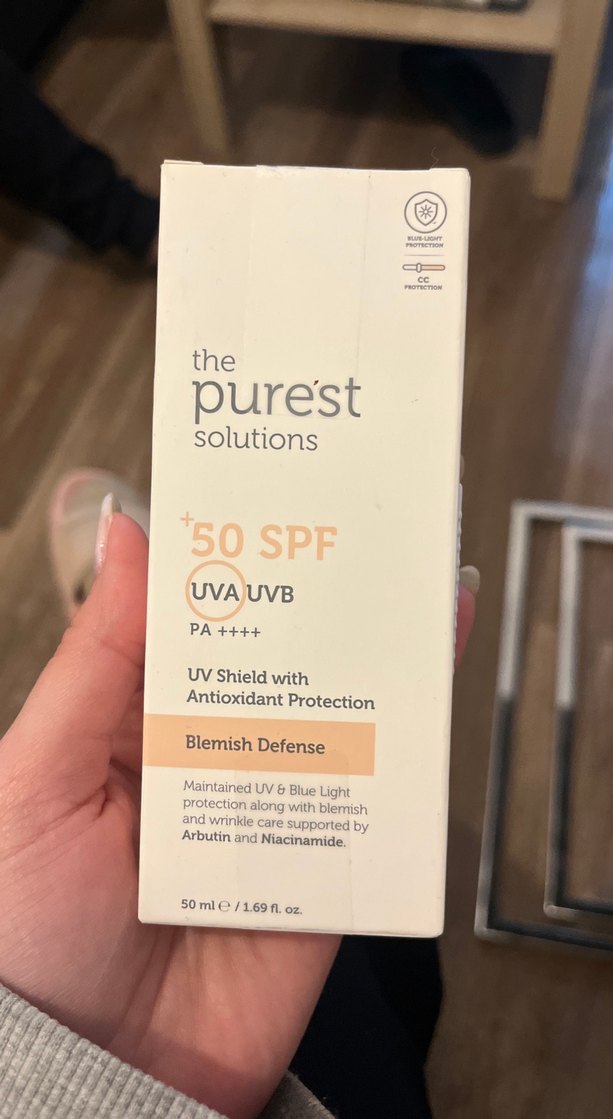 Pure'st Solutions güneş koruyucu krem, SPF 50 ve PA++++ koruma sağlar. Arbutin ve Niacinamide ile leke savunması ve antioksidan koruma sunar. Mavi ışık ve kırışıklıklara karşı korur. ☀️