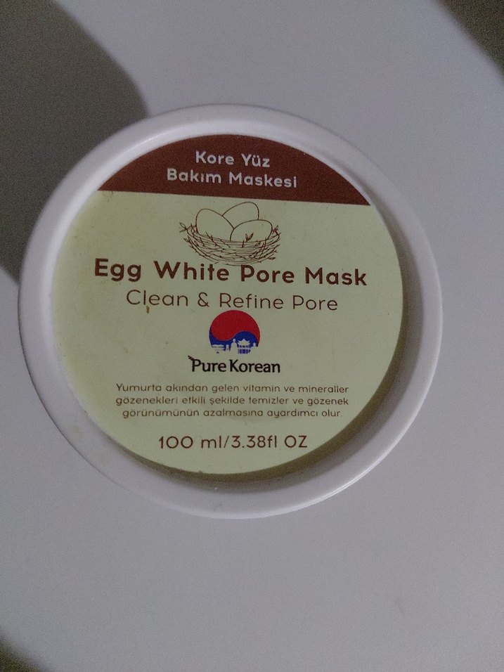 PureKorean Yumurta Akı Gözenek Maskesi, yumurta akından gelen vitamin ve minerallerle gözenekleri etkili şekilde temizler ve görünümünü azaltmaya yardımcı olur. 100ml.