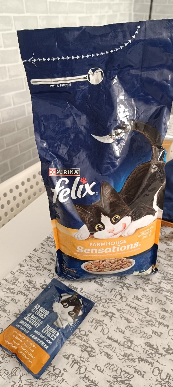 Purina Felix Farmhouse Sensations kedi maması, tazeliği koruyan kilitli pakette lezzetli parçalar içerir.2 kilo